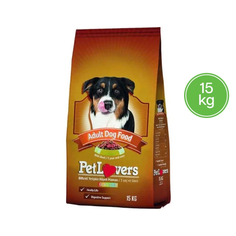 طعام جاف للكلاب البالغة بنكهة لحم البقر كمصدر بروتين أساسي.