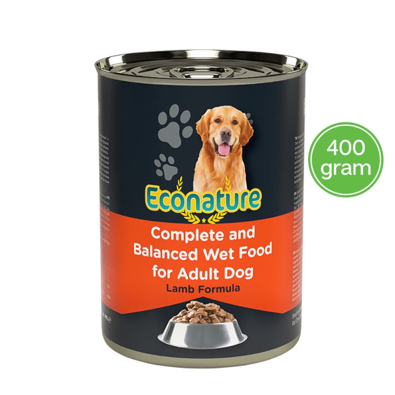 طعام رطب كامل ومتوازن للكلاب البالغة يحتوي على قطع لحم الضأن، مخصص للبالغين.