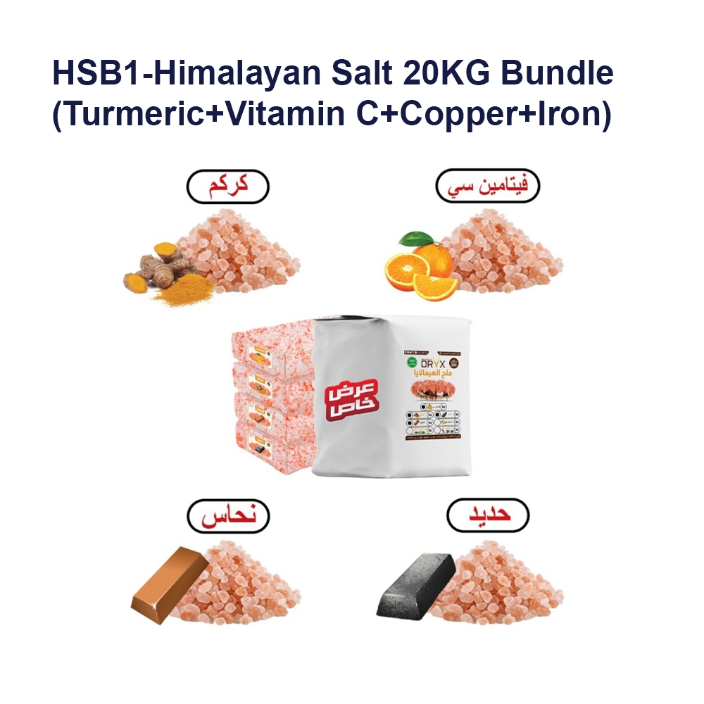 HSB1 – حزمة ملح الهيمالايا 20 كجم (كركم + فيتامين C + نحاس + حديد)