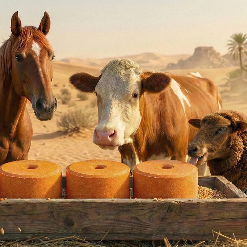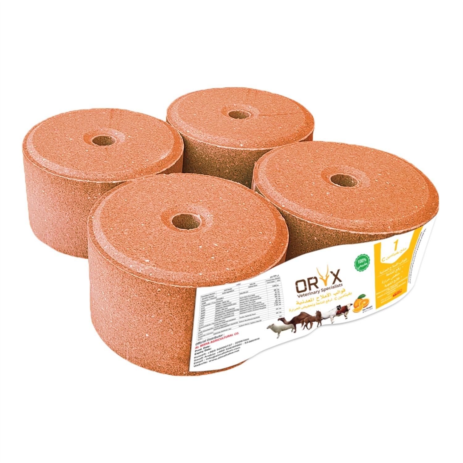 - 40 جرام / يوم للماشية الكبيرة و 5 جرام / يوم للأغنام و الماشية الصغيرة. قد يكون الاستهلاك