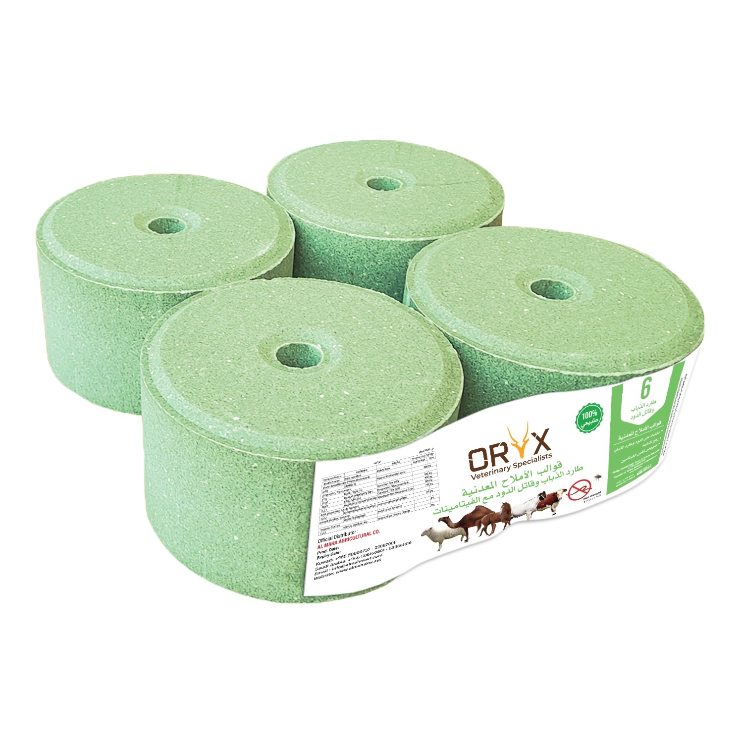 - يتم إنتاج كتلة ملح الدود بتركيبة توفر المعادن والفيتامينات للحيوانات، كما تُبعد الذباب عن الحيوانات أيضًا.