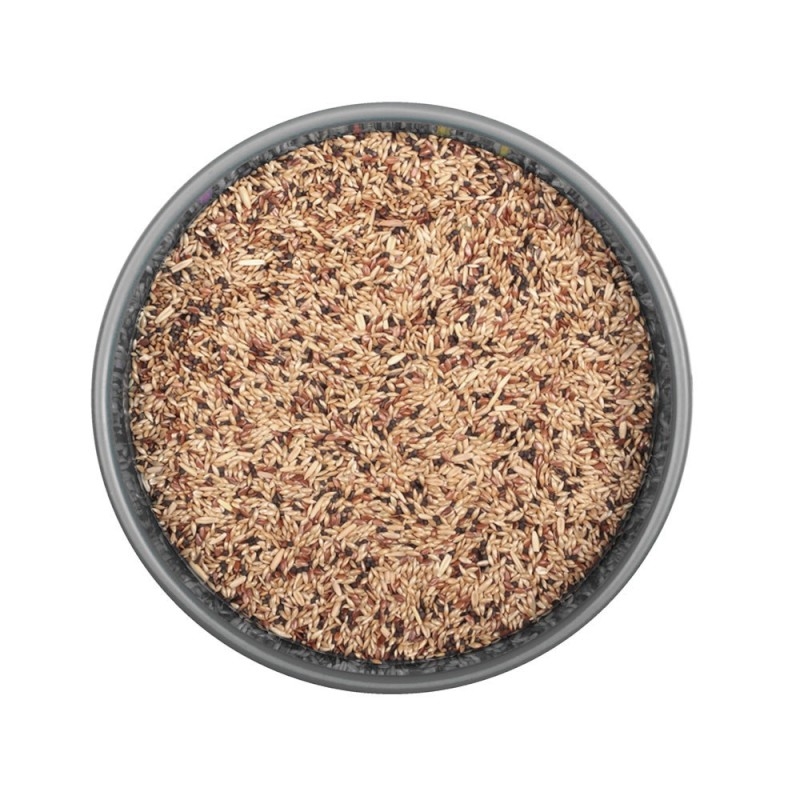 المكونات: بذور الكناري، بذور الكانولا، بذور الكتان، الشوفان، بذور النيجر، طعام الطيور، والخبز الملون.