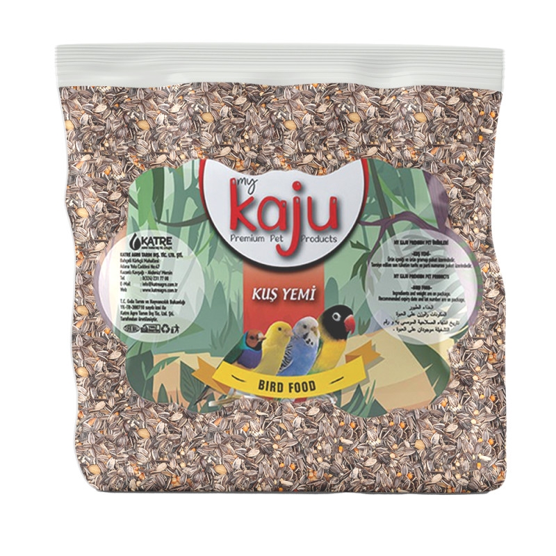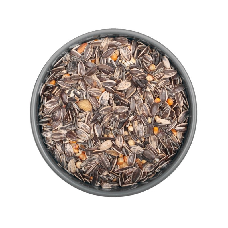 المكونات: بذور عباد الشمس المخططة، الفشار، الذرة الصفراء، الذرة السوداء، بذور العصفر، الأرز، الفول السوداني.